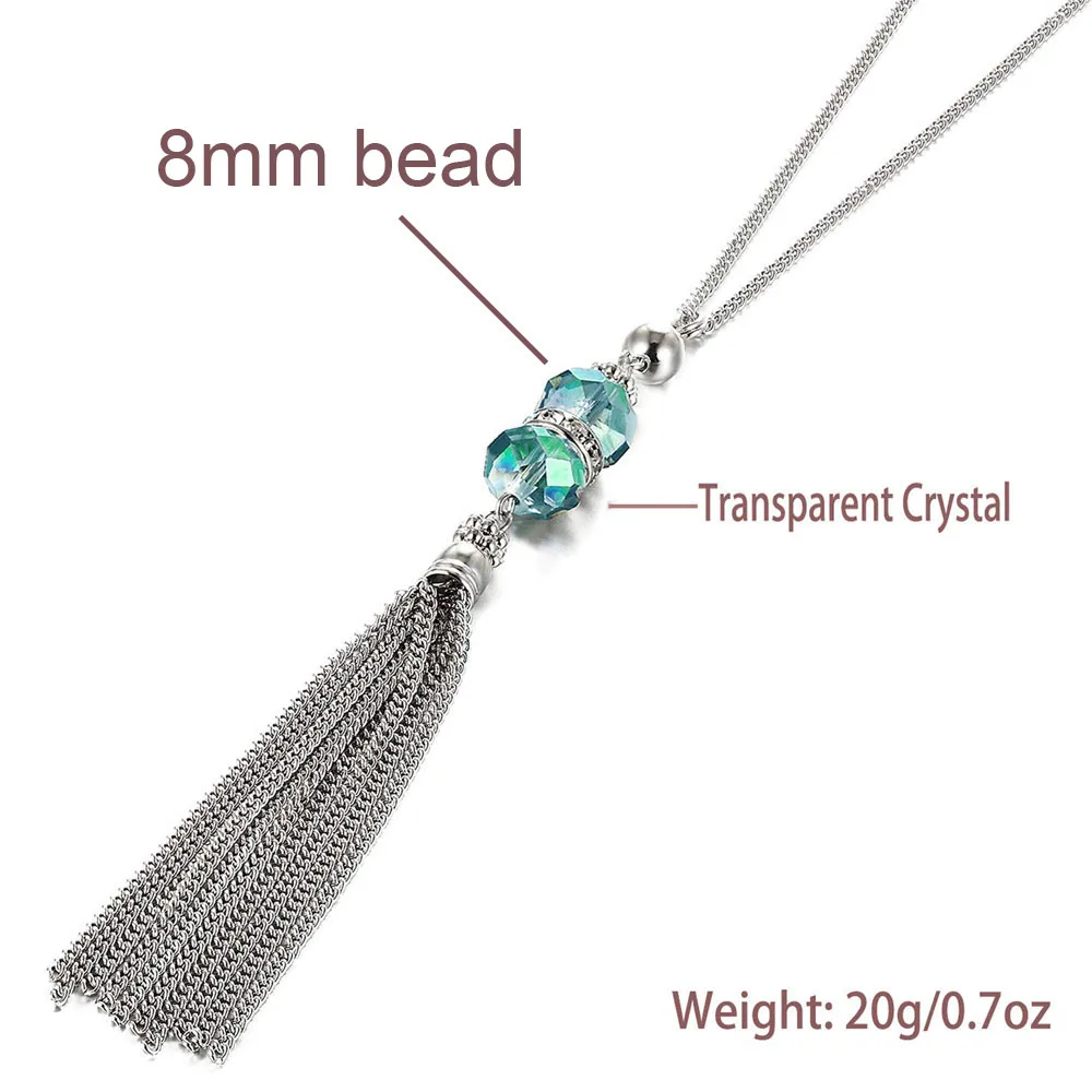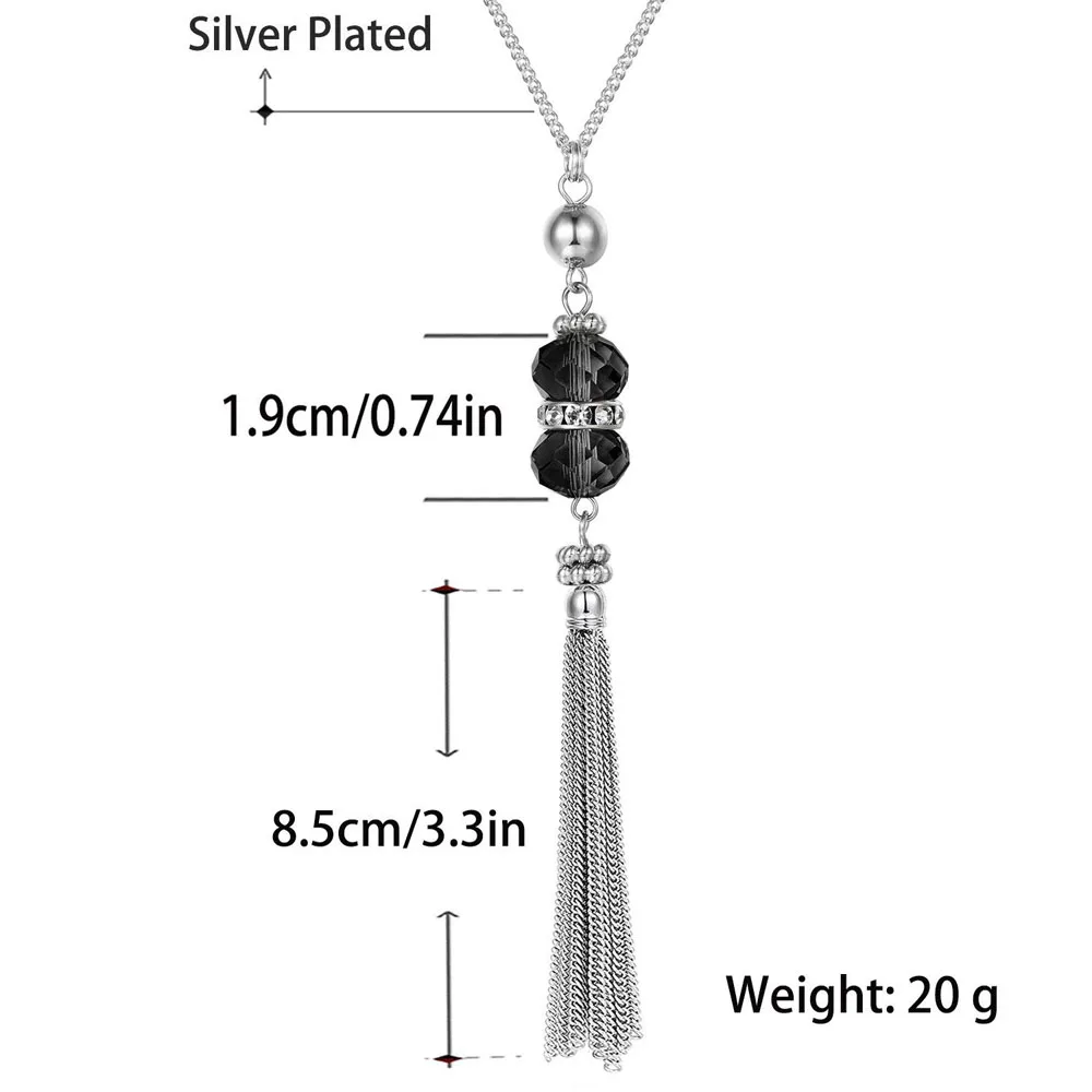 Best 2019 New Crystal Bead Sweater Chain Necklace for Women Fashion Silver Color Tassel Pendant Long Nec