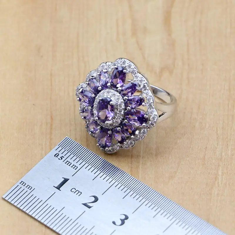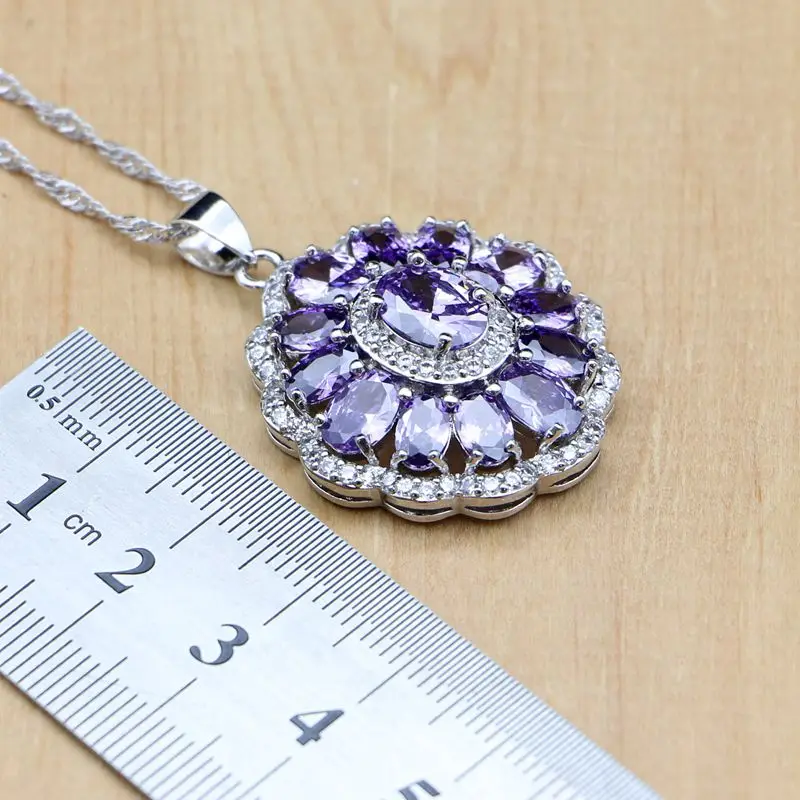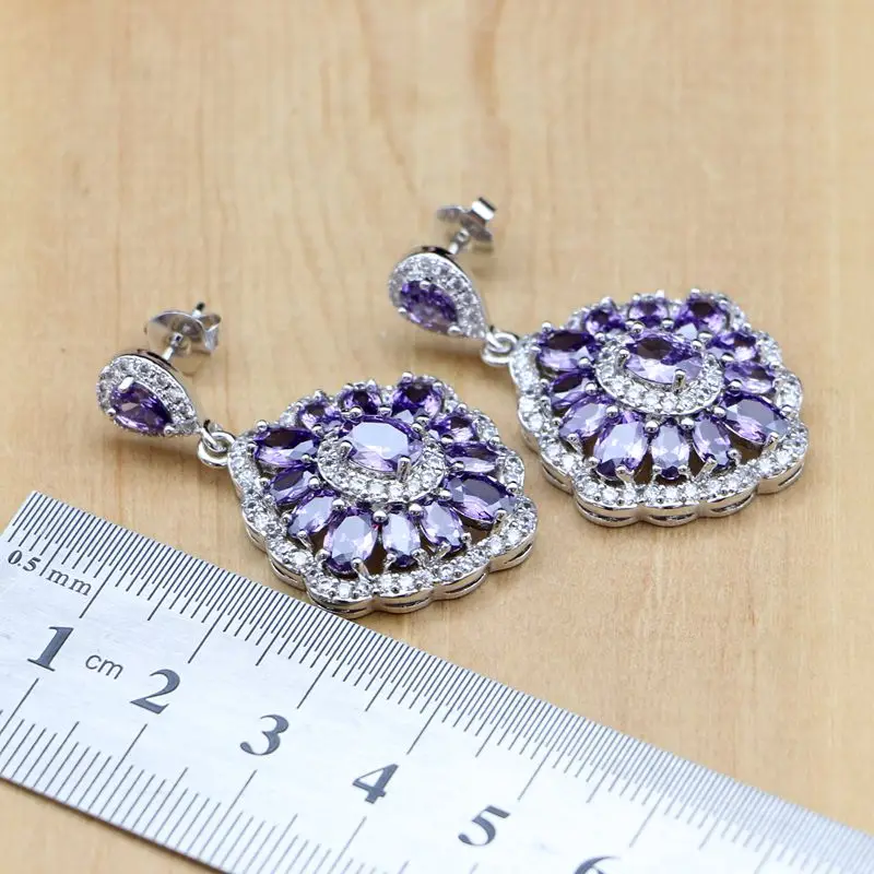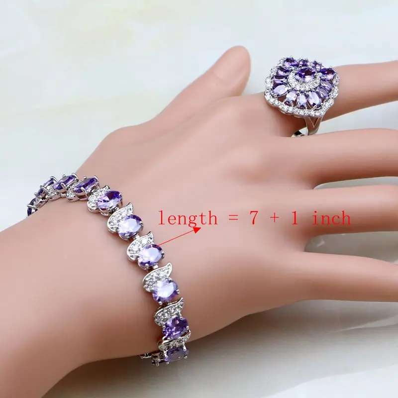 Buy 925 Silver Bridal Jewelry Purple CZ White Zircon Jewelry Sets For Women Wedding Earrings/Pendant/Ri