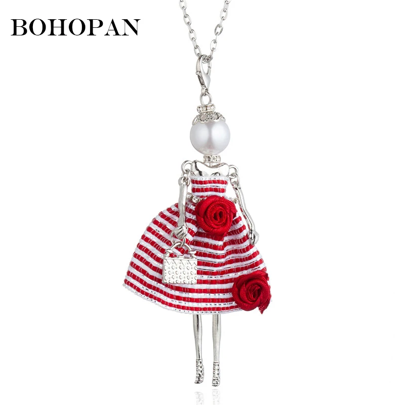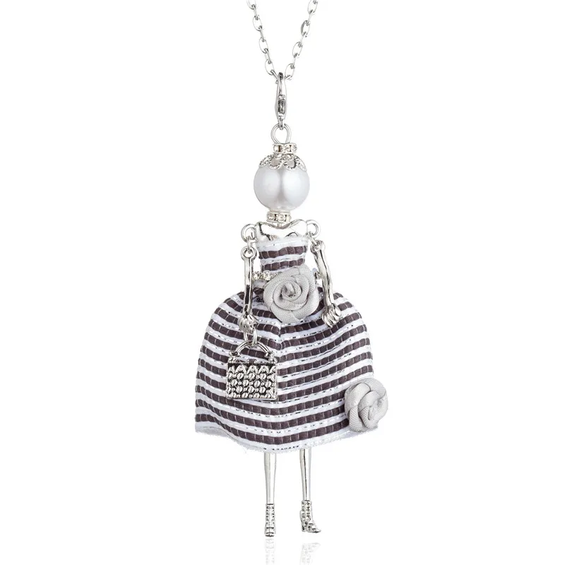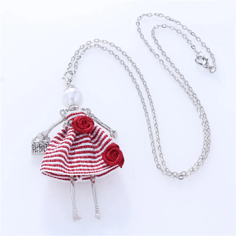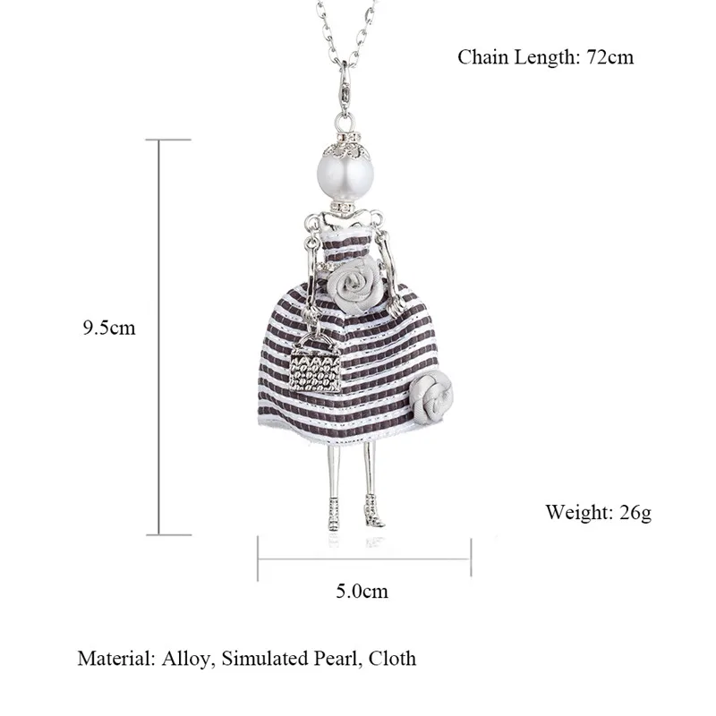 Best Elegant Doll Necklace For Women Stripe Dress Rose Design Alloy Crystal Pendants Necklaces Fashion J