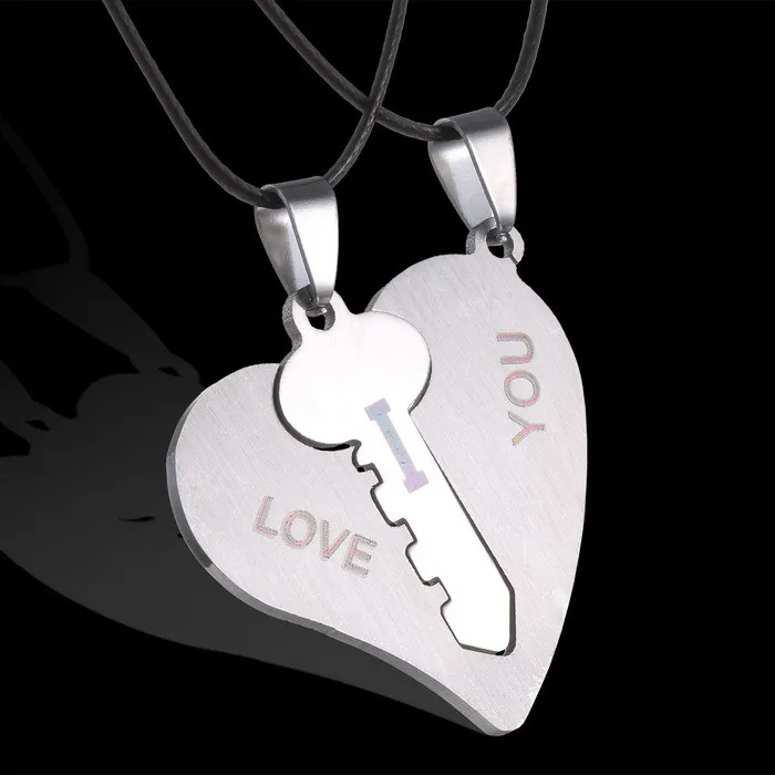 Best Hot sale Korean Couple Necklaces Set Pendant Necklace Engrave I Love You Matching Hearts Key 316L S