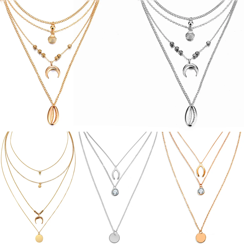 Buy New multi-layer crystal Moon necklaces and pendants for women Vintage charm gold choker necklace 20