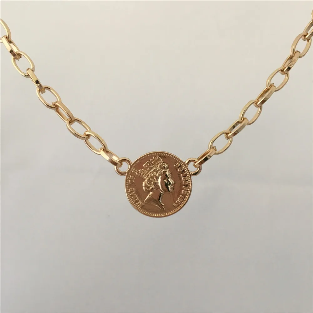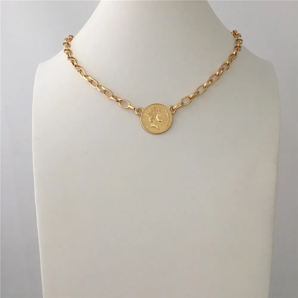 Best TRENDY GOLD COLOR PLATING COIN PENDANT NECKLACE FOR WOMEN GIRL