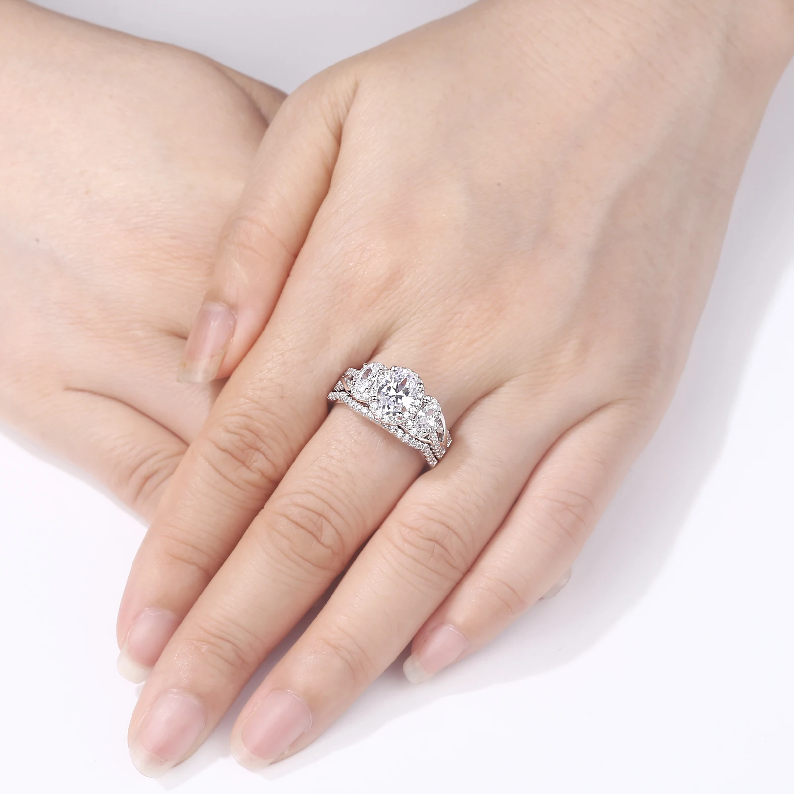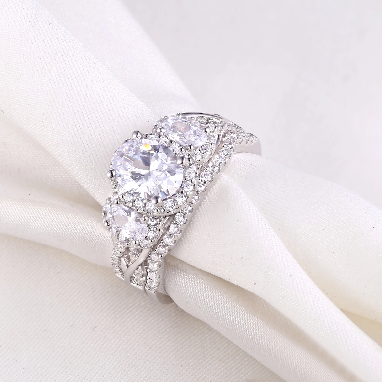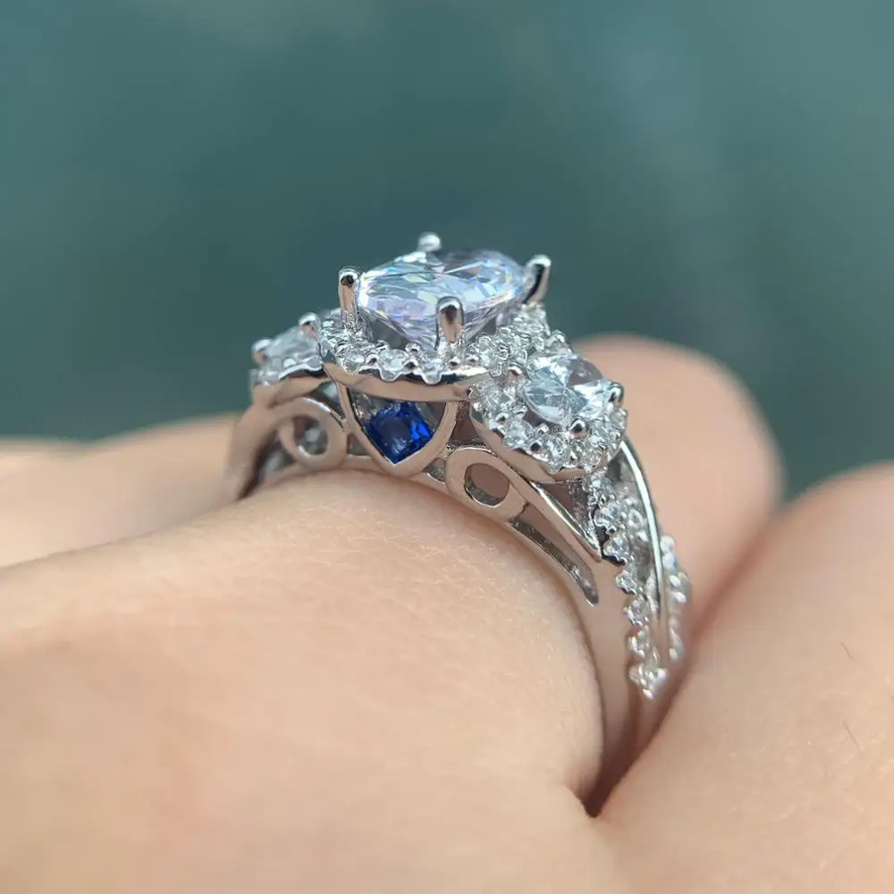 Best Wuziwen 3.5 Ct Oval Shape AAA Zircon 925 Sterling Silver Rings For Women Blue Crystal Wedding Ring