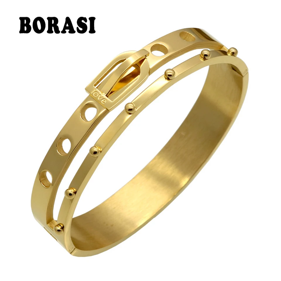 Buy BORASI Brand Design Belt Buckle Wide Cuff Bracelets & Bangles Armband Love Gold Color Bracelets For