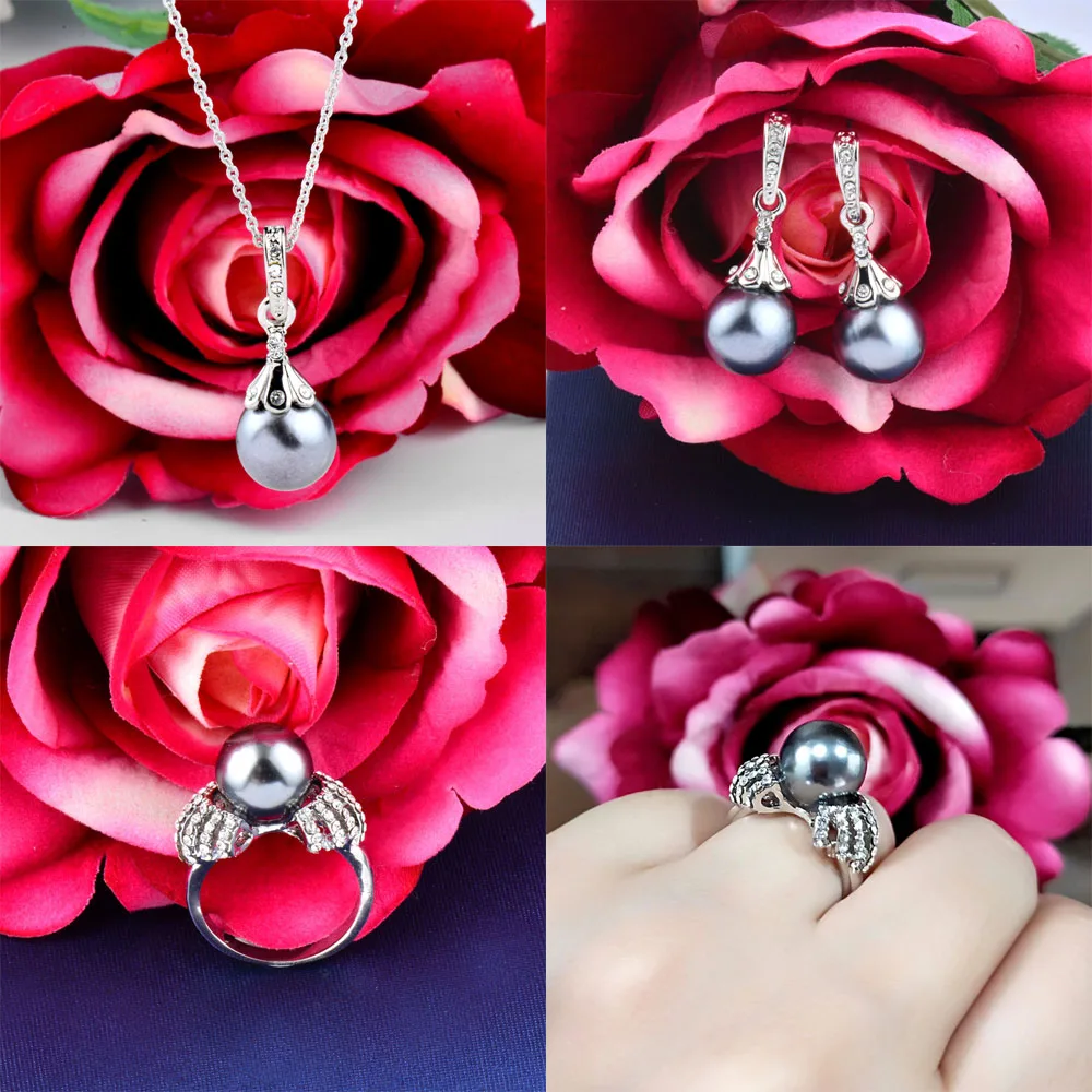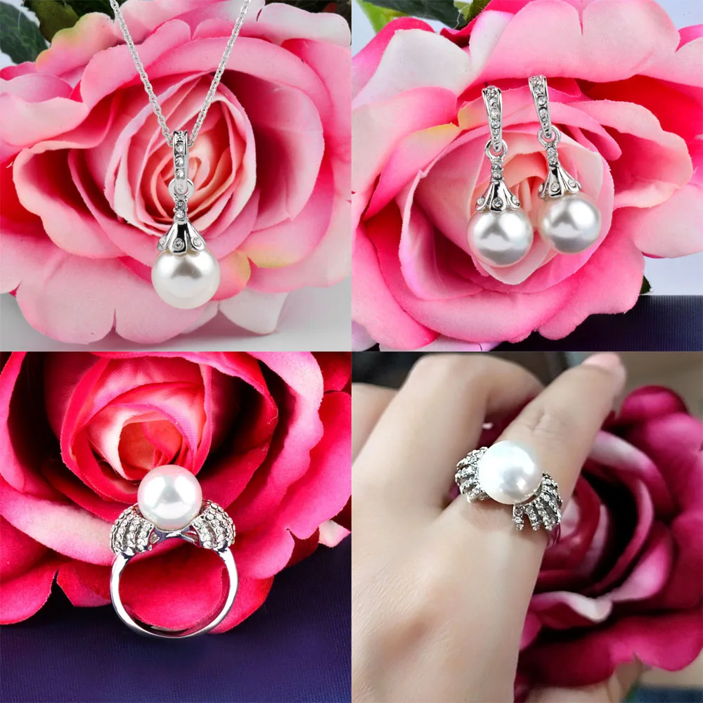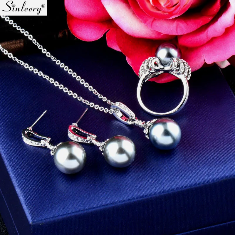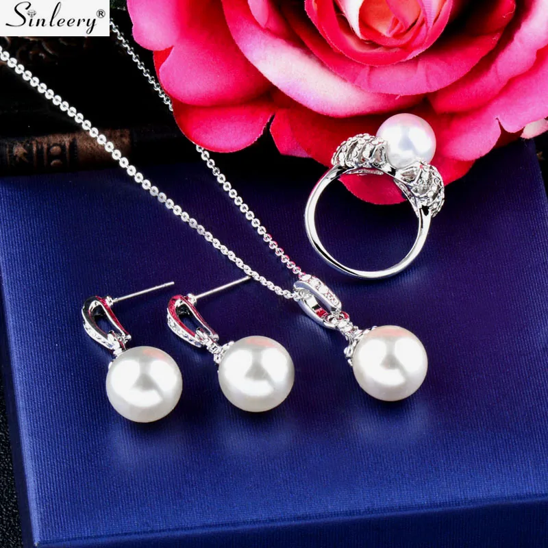 Buy SINLEERY Elegant Imitation Pearl Wedding Bridal Jewelry Set for Women Silver Color Necklace Earring