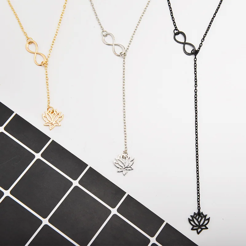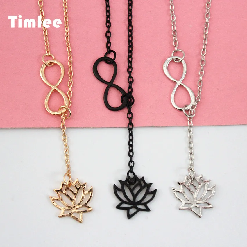 Buy Timlee N012 free shipping New Simple Hollow Out Lotus 8 Infinity Flower Alloy NecklacesFashion Jewe