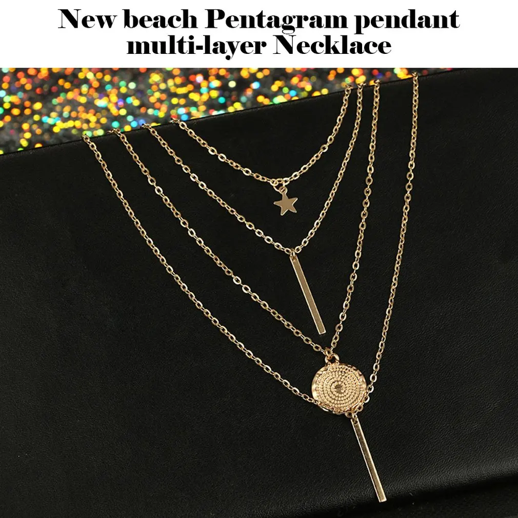 Buy Women's Vintage Coin Shell Star Pendant Necklace 2019 Bohemian Multilayer Gold Silver Moon Choker N