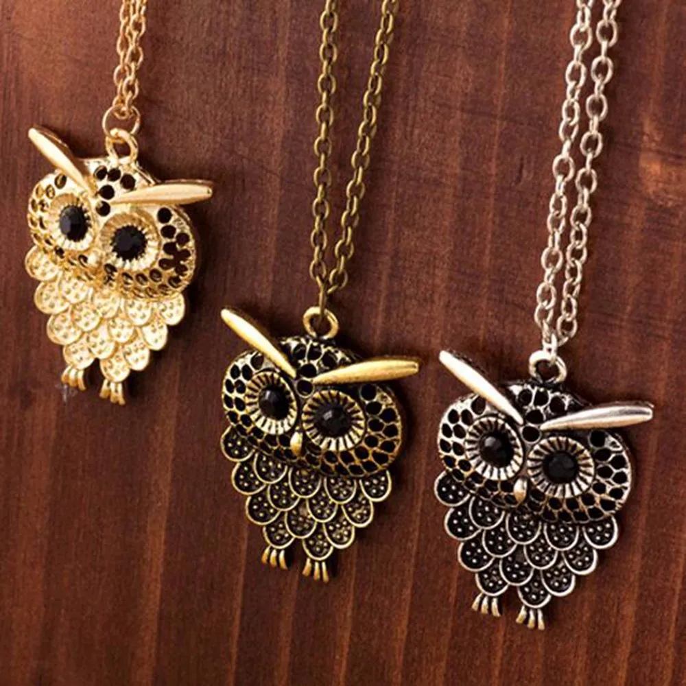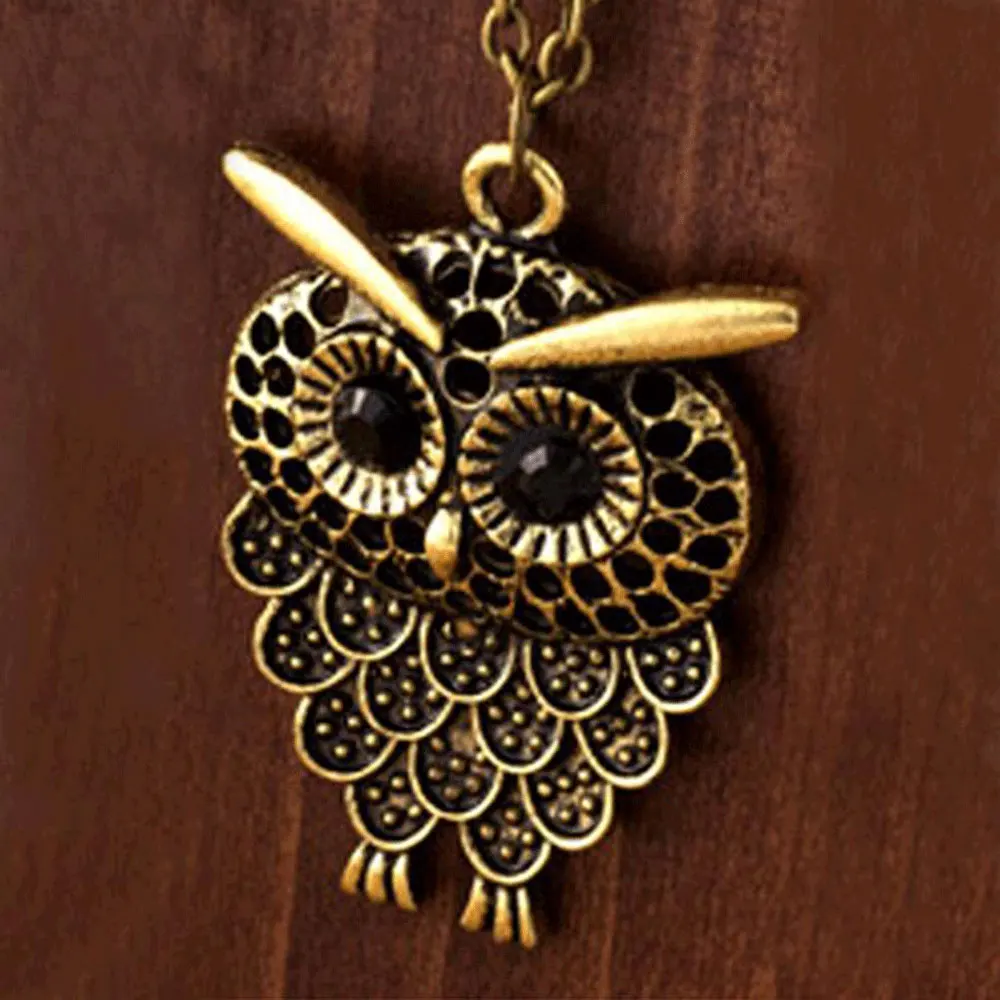 New 2016 New Hot Vintage Women Owl Pendant Long Sweater Chain Jewelry Golden Antique Silver Bronze Char
