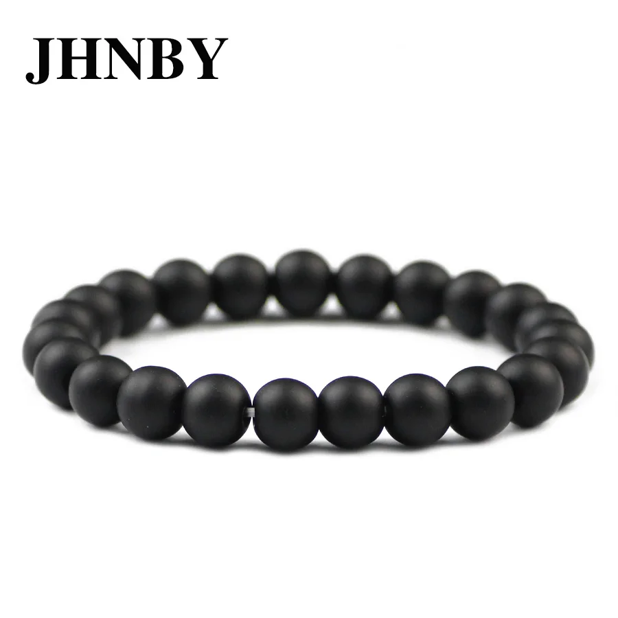 Promo JHNBY Matte Black Charm Stone Beads Bracelet For Women 6/8/10/12MM Braided/Elastic Rope Men Bangle