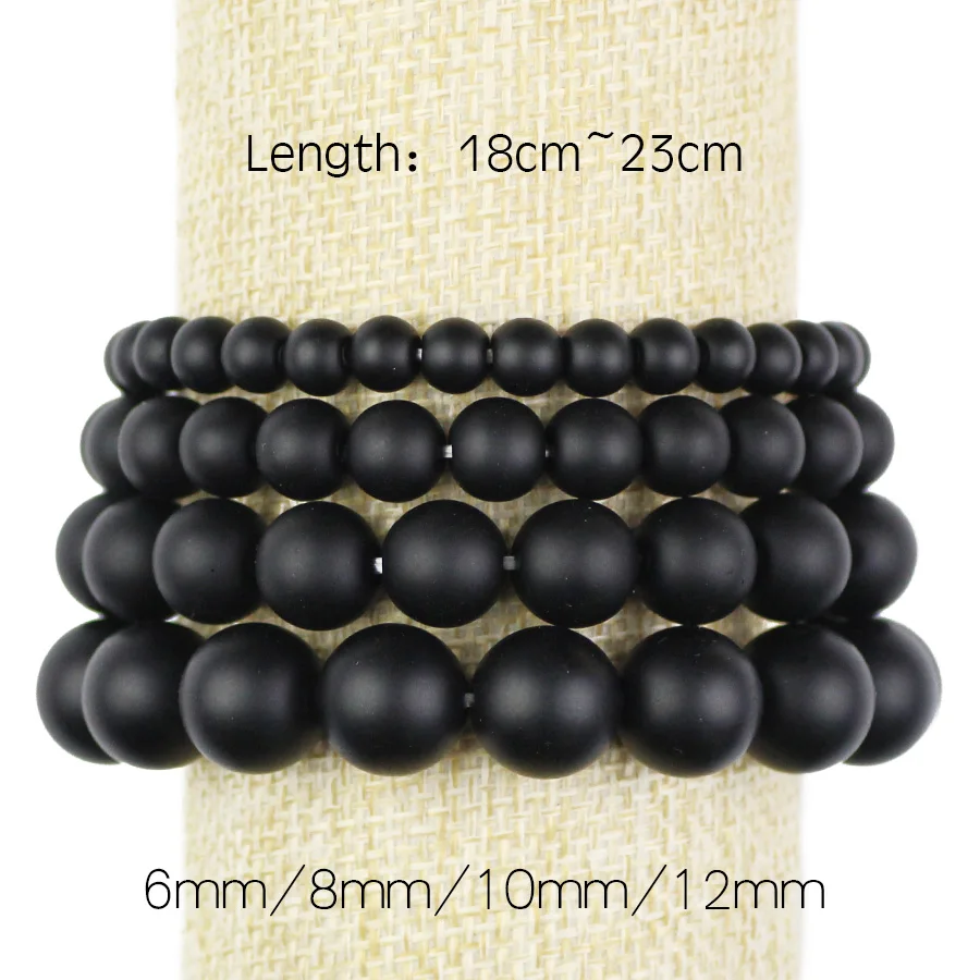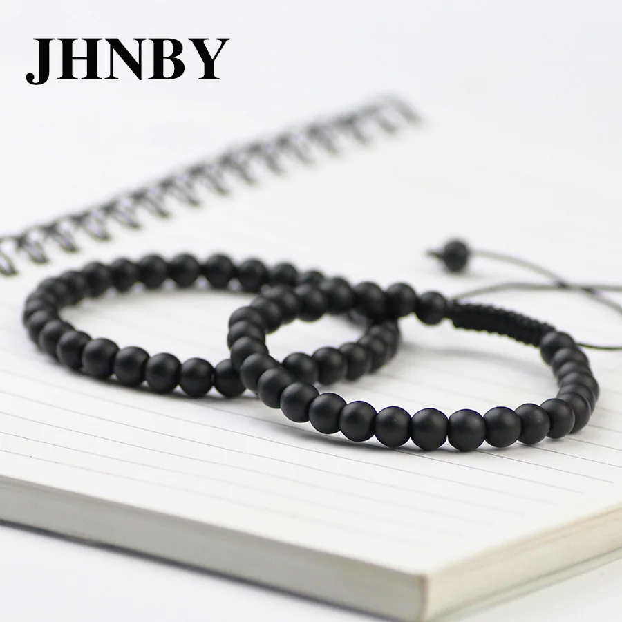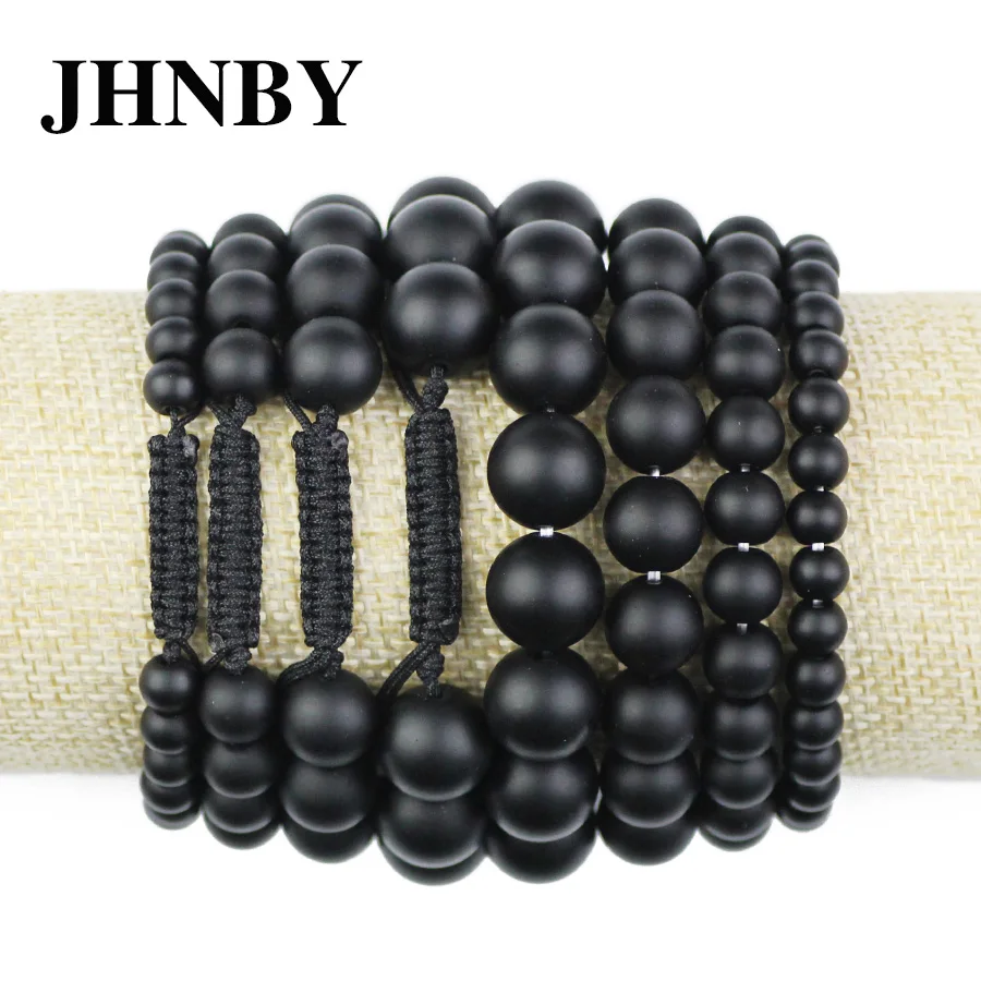 New JHNBY Matte Black Charm Stone Beads Bracelet For Women 6/8/10/12MM Braided/Elastic Rope Men Bangle