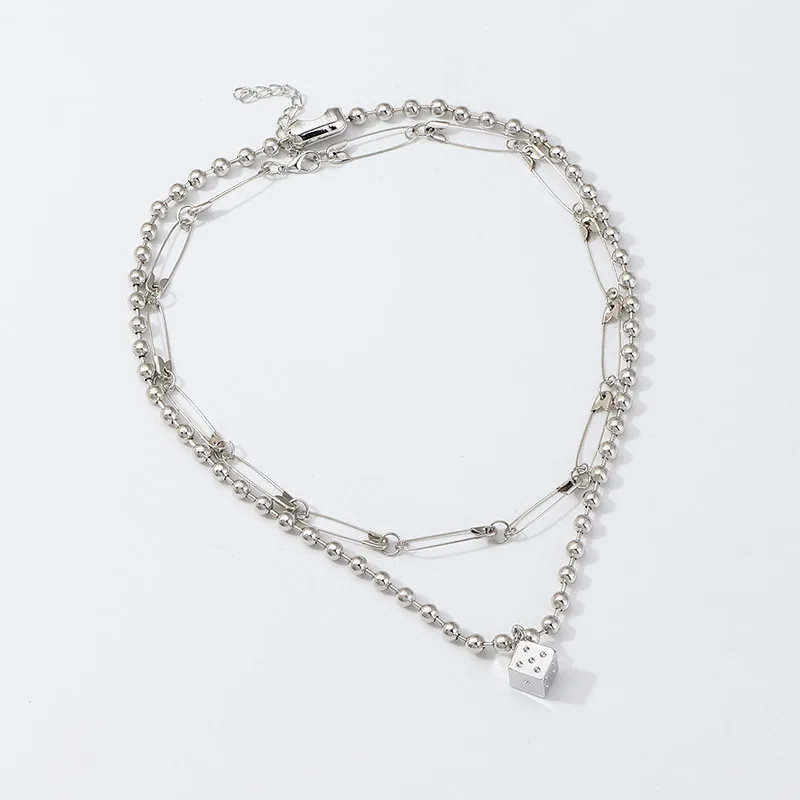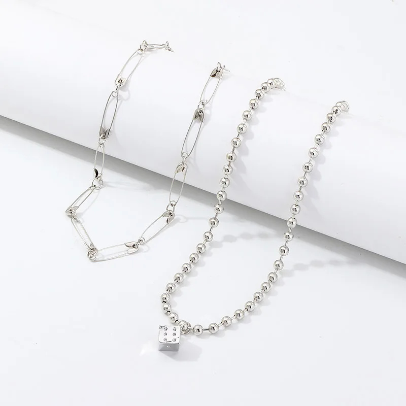 New New design silver metal bead chain choker necklace for women exaggeration punk pin square pendant s