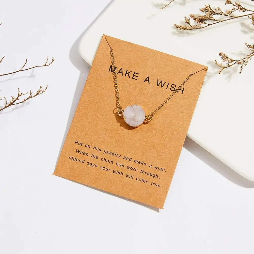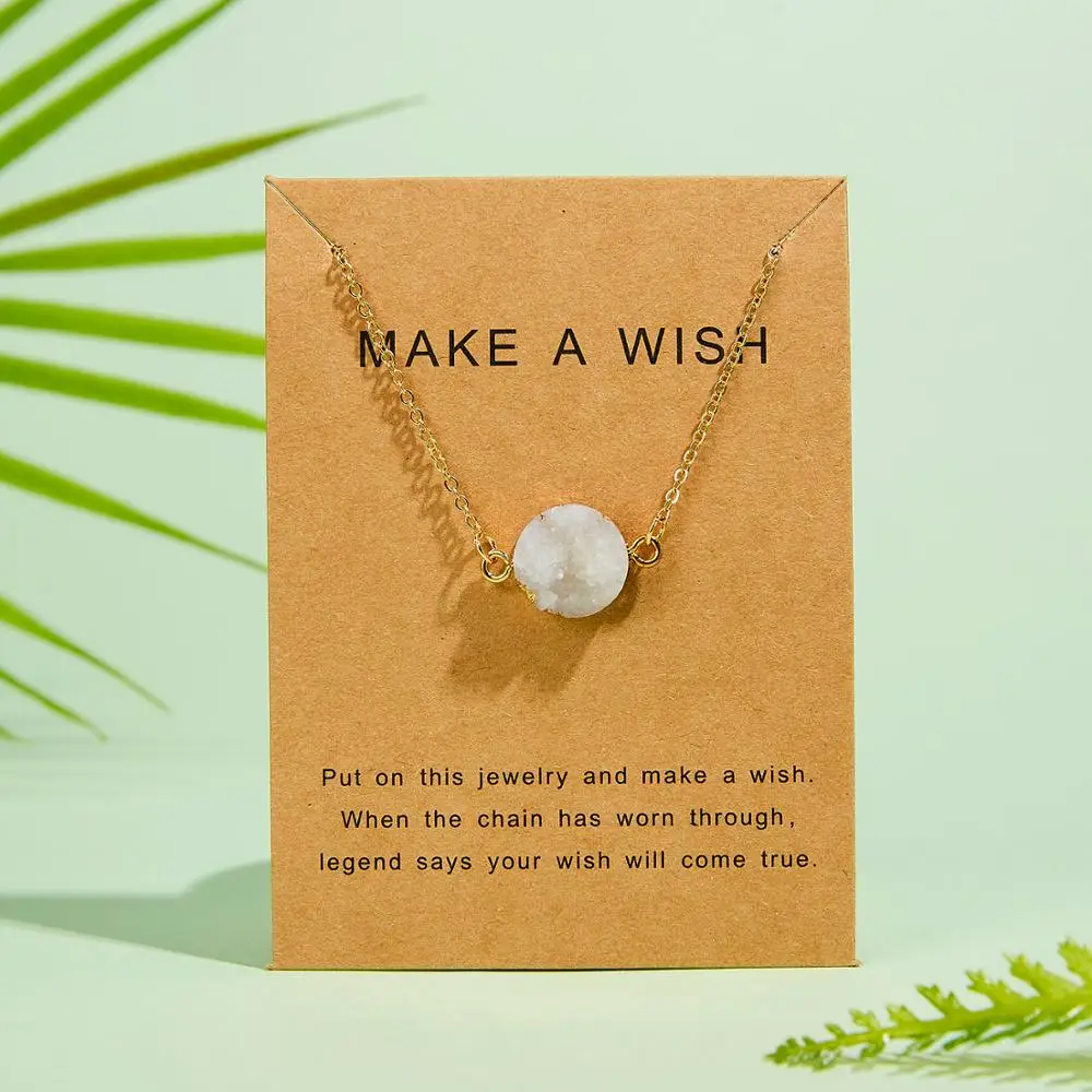 New Rinhoo 1PC 7*9cm MAKE A WISH Cardboard Round Geometric Shape Resin Pendant Necklace For Women Men F