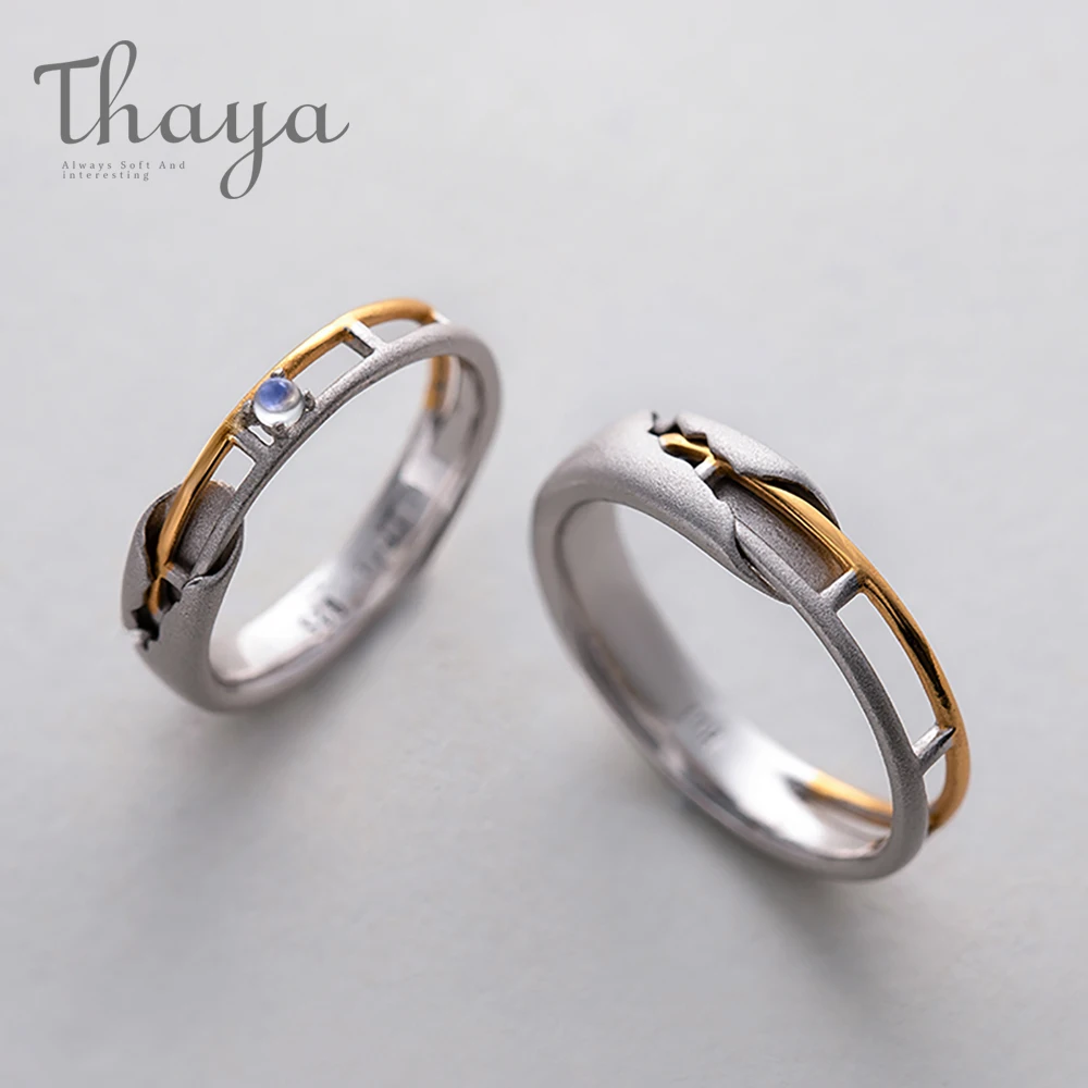 New Thaya Train Rail Design Moonstone Lover Rings Gold and Hollow 925 Silver Eleglant Jewelry for Women