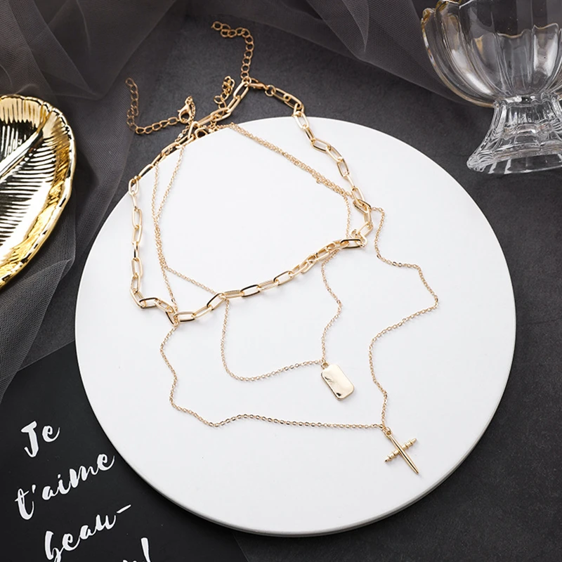 New Vintage Statement Geometric Square Cross Love Circle Crystal Pendant Necklaces Long Sweater Chain F