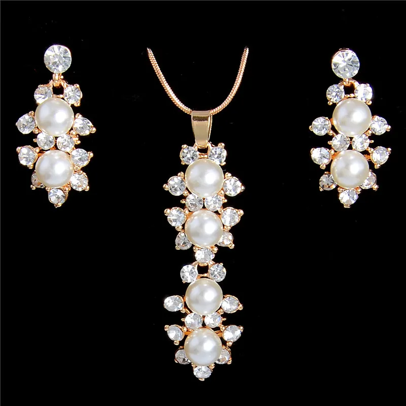 New Fashion Imitation Pearl Costume Jewelry Sets Wedding Necklace Earring Sets Bridal Flower Jewelry Se