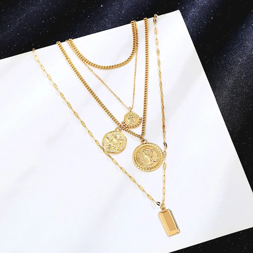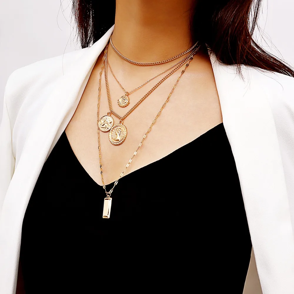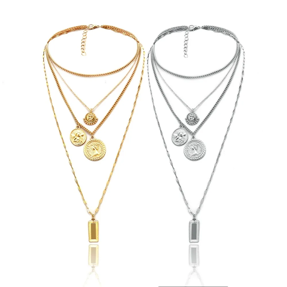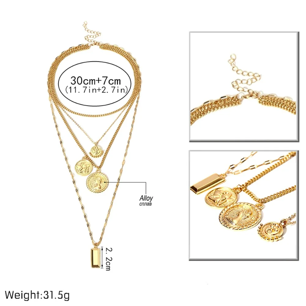 New Ingesight.Z Boho Multi Layered Choker Necklace Collar Statement Rectangle Queen Angel Pendant Neckl