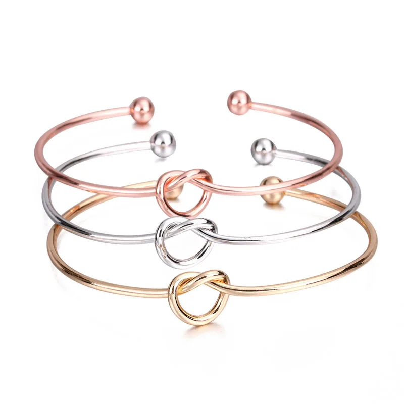 Promo Knot Cuff Bracelets & Bangles For Women Men Charm Heart Jewelry Silver Rose Gold Color Couple Brace