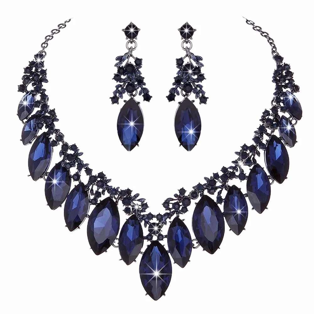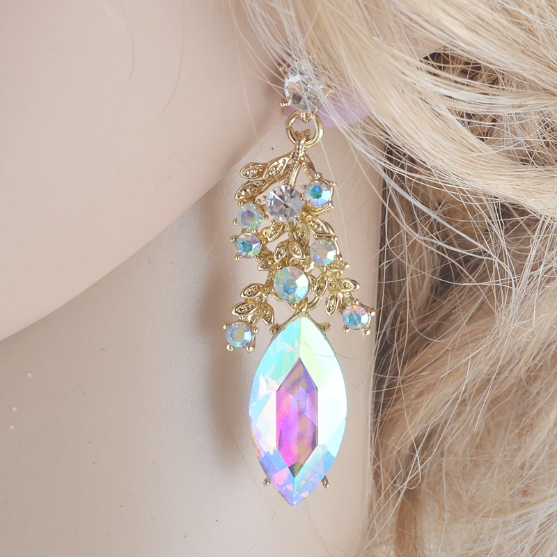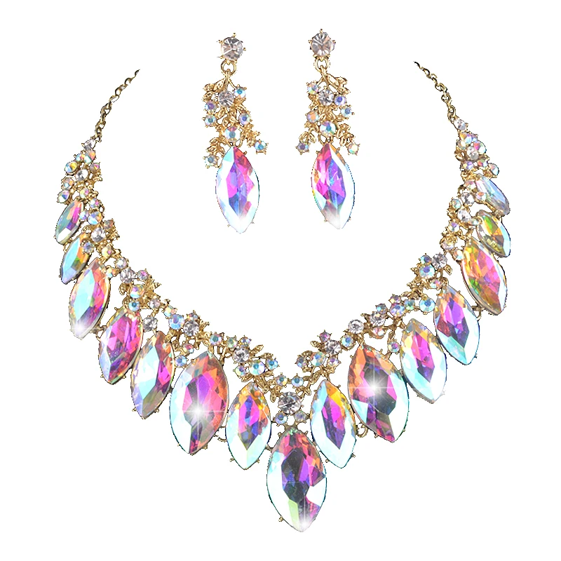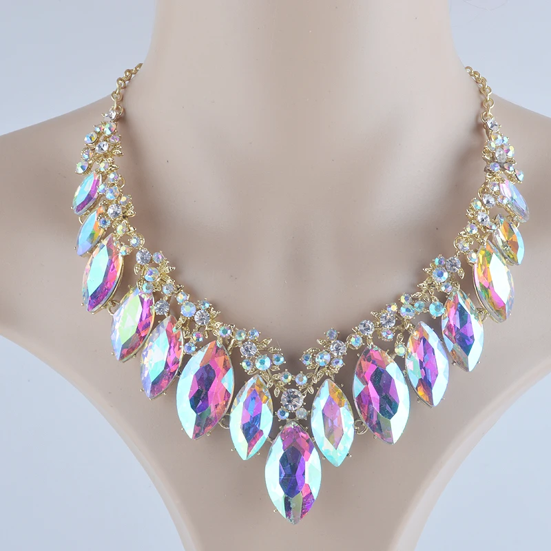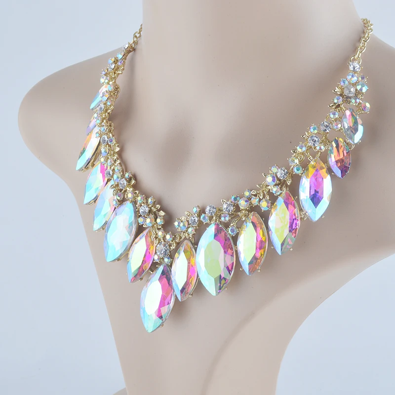 Buy Marquise AB color crystal pageant bridal Jewelry sets women party wedding Dress necklace earrings R