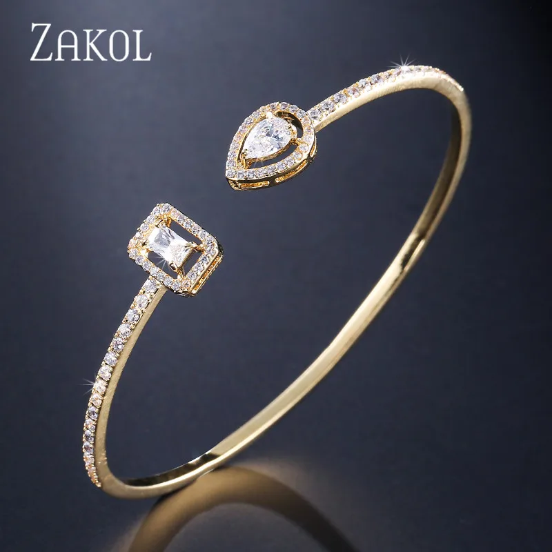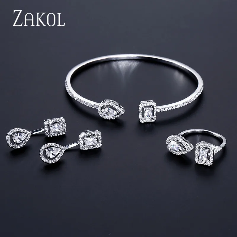 Promo ZAKOL Brand Fashion Design Jewelry Set Sparking CZ Stone Earrings Bracelet & Bangle Ring For Women