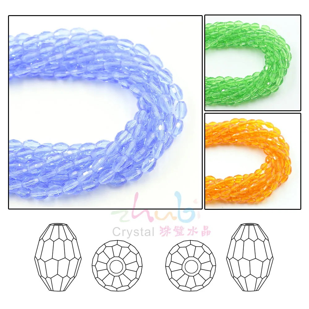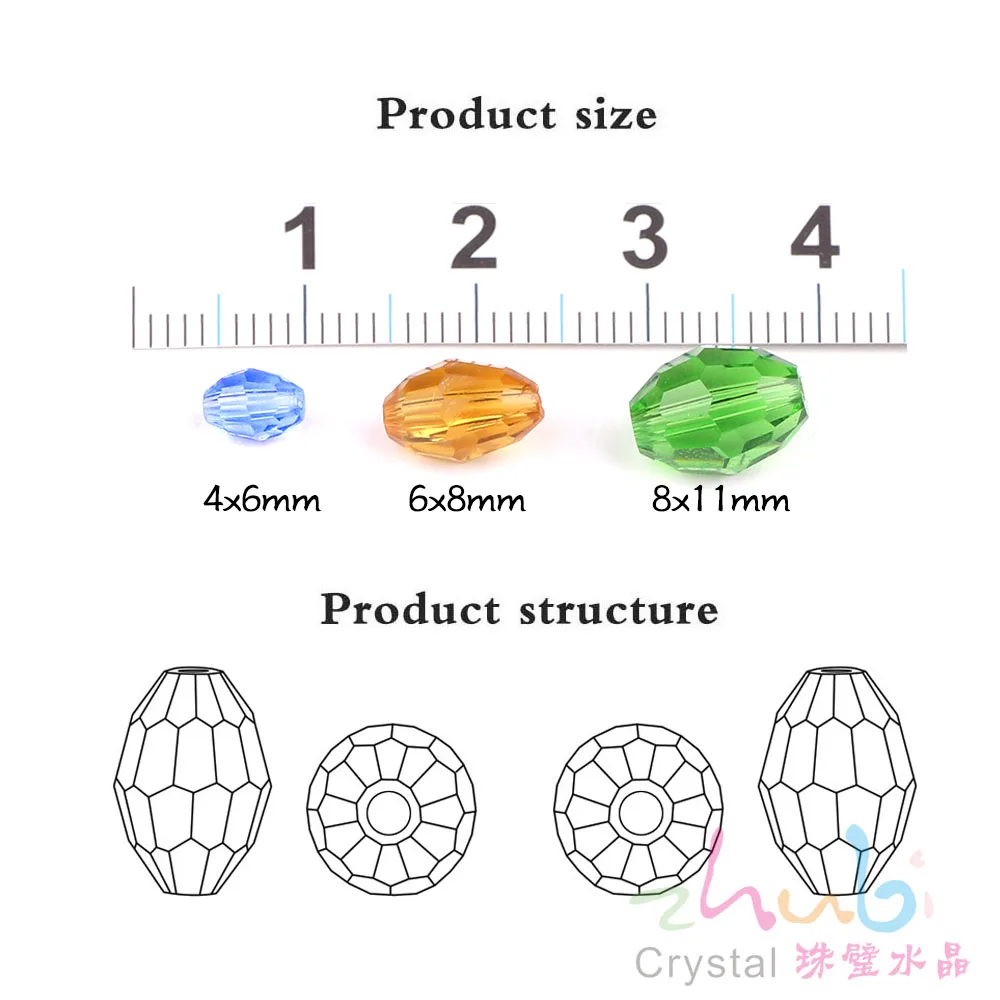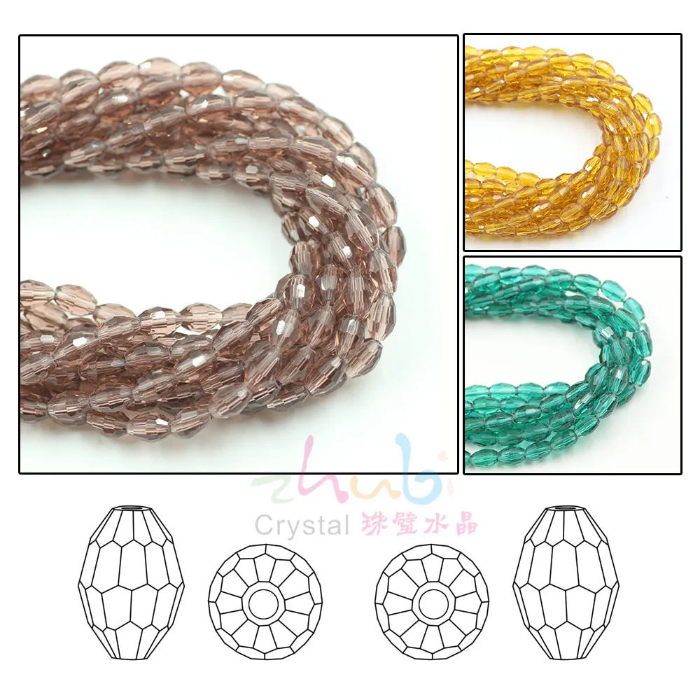 New ZHUBI 70pcs/lot Glass Rice Beads 4*6/6*8mm Charm Crystal Faceted Loose Olive Beads For DIY Making B